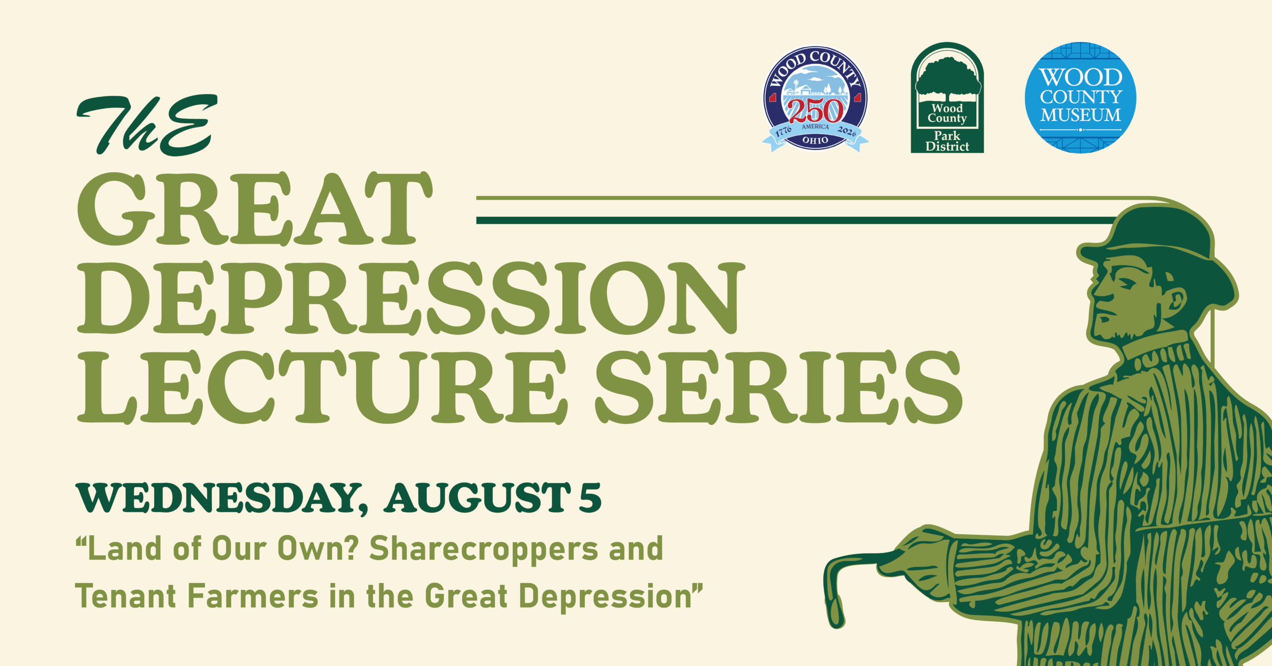 Wood County Museum 13660 County Home Rd., Bowling Green, OH, United StatesThe Great Depression Lecture Series - "Land of Our Own? Sharecroppers and Tenant Farmers in the Great Depression" August 5 | 6:00PM Wood County Museum Meeting Room FREE A core […]