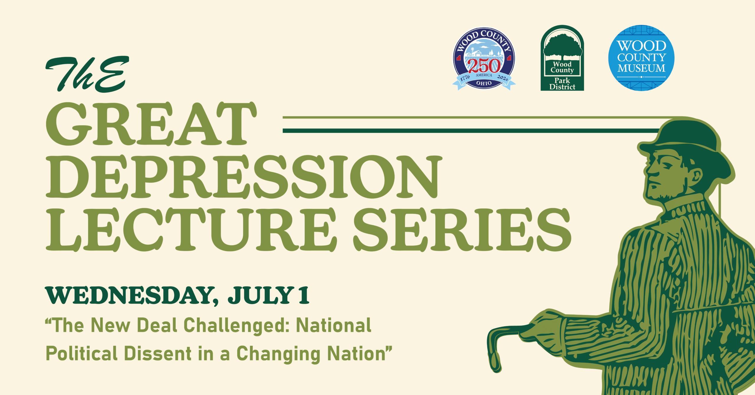Wood County Museum 13660 County Home Rd., Bowling Green, OH, United StatesThe Great Depression Lecture Series - "The New Deal Challenged: National Political Dissent in a Changing Nation" July 1 | 6:00PM Wood County Museum Meeting Room FREE In myriad ways, […]