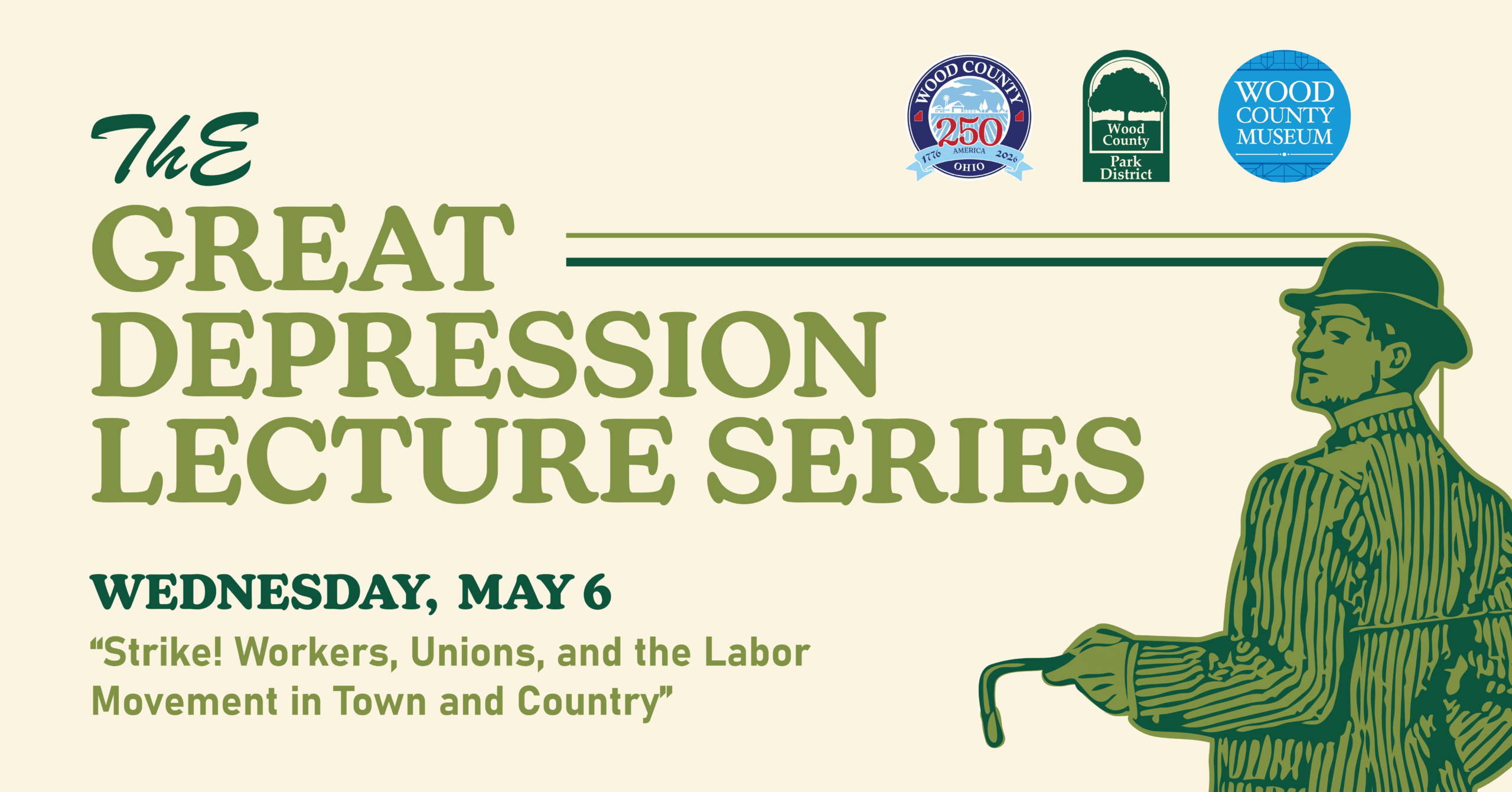 Wood County Museum 13660 County Home Rd., Bowling Green, OH, United StatesThe Great Depression Lecture Series - "Strike! Workers, Unions, and the Labor Movement in Town and Country" May 6 | 6:00PM Wood County Museum Meeting Room FREE During the Great […]